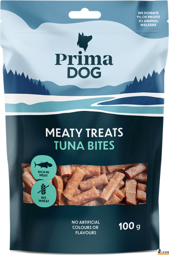 PrimaDog Tonnikalapala on viljaton ja puolikostea makupala herkkuhetkiin ja koulutuksen palkitsemiseen. Tonnikalapaloissa sisältävät reilusti tonnikalaa eikä lainkaan lisättyä sokeria tai viljoja. Palat ovat kooltaan n. 2 cm pituisia ja ne on helppo taittaa tarvittaessa myös pienempiin palasiin. Tonnikalapaloissa on voimakas tuoksu ja siksi ne ovat myös monen hieman nirsomman koiran herkkua. Herkut ovat lisäksi erittäin kevyitä ja vähärasvaisia, mikä tekee niistä oivan lenkki- ja treeninamin painonhallintaa kaipaavalle koiralle.