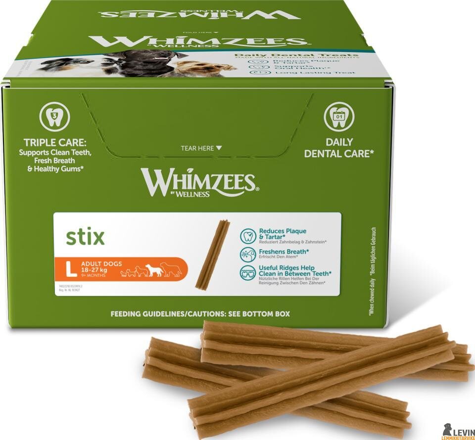Whimzees Stix hammaspuruluu koiralle – pitkäkestoinen, viljaton ja kasviperäinen.