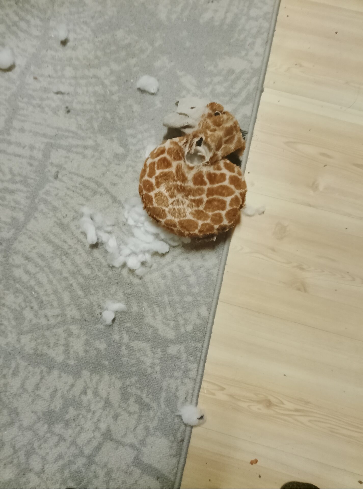 Kestää noin vuoden meidän sheltti pojalla😀 Tämä nykyinen onko kolmas samanlainen nobby kirahvi. Kuvassa edellinen noin vuoden vanha😂