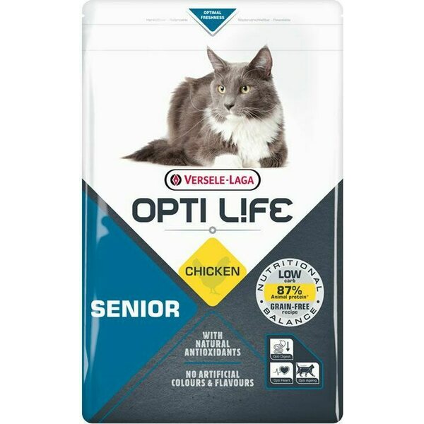 Opti Life Cat Senior ruoka on kehitetty erityisesti jo vanhemmalle kissalle. Ruuan pääraaka-aineeksi on valittu nivelten toimintaa tukemaan kananliha, joka on luonnollinen kondroitiinin lähde. Helposti sulavat raaka-aineet yhdessä kuitujen kanssa tukevat seniorikissan ruuansulatusta. Luonnolliset antioksidantit, tauriini sekä lisätty C- ja E-vitamiini ylläpitävät mm. kissan normaalia vastustuskykyä sekä sydämen terveyttä. Ei sisällä keinotekoisia väri-, haju- tai makuaineita.
