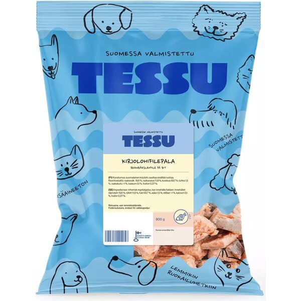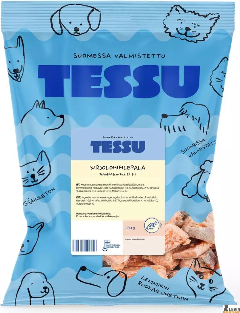 Kotimainen Tessukirjolohifilepalat on erinomainen omega-3-rasvahappojen lähde. Hyväksi turkille ja iholle. Sopii myös kissoille.