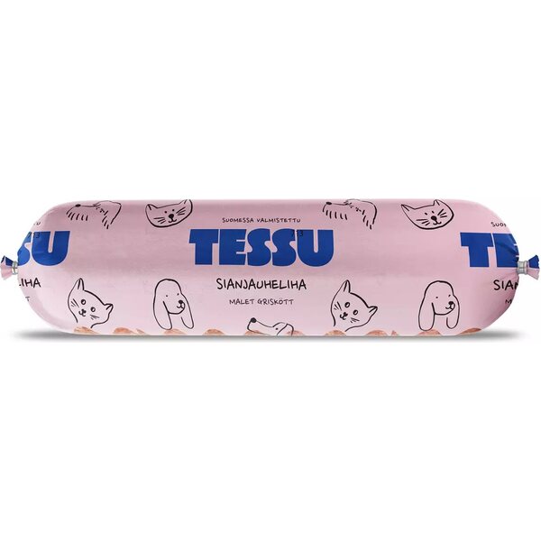 Kotimainen Tessu sianjauheliha sopii eritäin hyvin aktiivisille koirille korkean rasvapitoisuuden vuoksi. Luuton.
