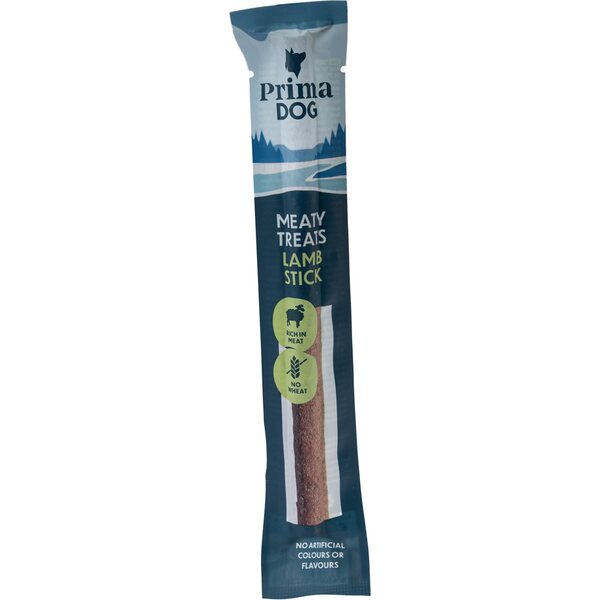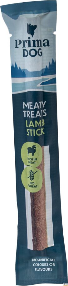 PrimaDog Lammastikku on mehevä ja herkullinen makupalapatukka koirasi herkkuhetkiin. Lihatikussa on puolikostea koostumus, joten siitä saa pilkottua helposti monta pientä suupalaa. Kätevä yksittäispakkaus kulkee siististi mukana taskussasi lenkeillä ja koiraharrastuksissa.