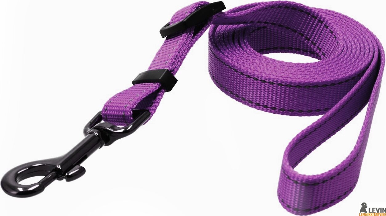 Dogman Iris on säädettävä hihna pistoolilukolla ja siinä on kudotut heijastintikkaukset molemmin puolin näkyvyyden lisäämiseksi. Talutushihnan saa säädettyä haluttuun pituuteen 120-200 cm välillä.