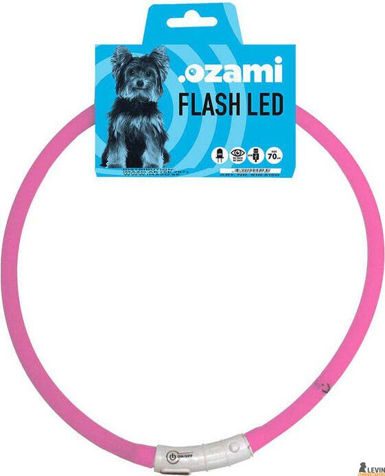 Ozami Flash Led valopanta on elastinen oikeaan mittaan leikattava huomiopanta, jonka sisällä kulkee led valaistus. Yksi koko 70 cm soveltuu kaikille koirille; putki leikataan saksilla sopivan pituiseksi. Mittaa koirasi kaulanympärys ja leikkaa putki saksilla oikean mittaiseksi. Näkyvyys noin 300 m päähän. Pannasta voi valita kolme eri asetusta: välkkyvä, hitaasti välkkyvä (toiminta-aika 4-5 h) tai jatkuva valo (toiminta-aika 2-3 h). Valopanta on uudelleen ladattava ja mukana toimitetaan USB-kaapeli. Lataus-aika noin 1,5-2 h. Panta on roiskevedenkestävä, joten sopii mainiosti myös syksyn sateisilla keleillä käytettäväksi.
