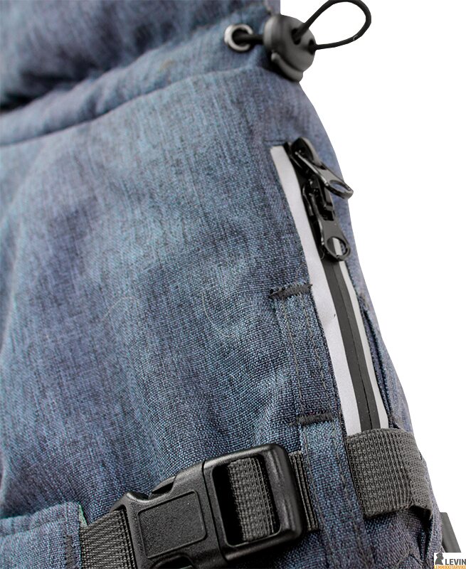 Takin selässä on vesitiivis, vetoketjulla varustettu aukko, jonka kautta talutin voidaan kiinnittää takin alla oleviin valjaisiin. Korkea kaulus suojaa herkän niskan alueen. Kauluksen sisällä on kuminauhalla kiristettävä trikookaulus lumi- ja tuulisulkuna. Trikookaulus voidaan myös vetää ylös koiran pään ja korvien suojaksi.