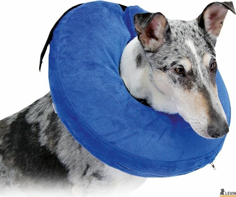 Puhallettava suojakauluri estää koiraa nuolemasta tai puremasta haavoja tai ärtyneiä ihoalueita. Kauluri on säädettävä. Vetoketjulla varustetun päällisen voi irrottaa ja pestä. Kestävä materiaali, joka ei naarmuta seiniä ja huonekaluja, eikä ole koiran kulkemisen esteenä. Kaulurin sisäkehässä on läpiviennit kaulapantaa varten, jolloin kauluri pysyy hyvin paikallaan.