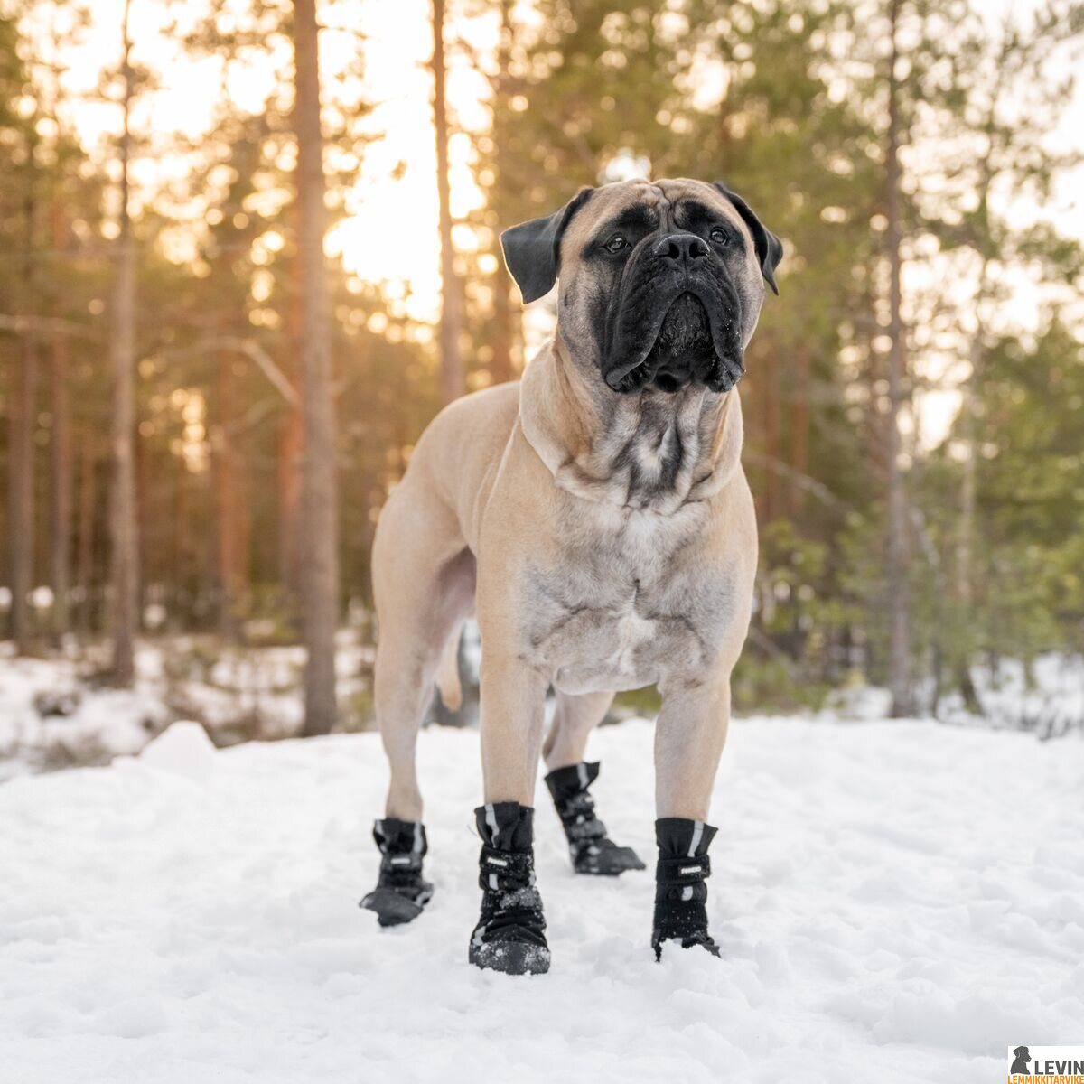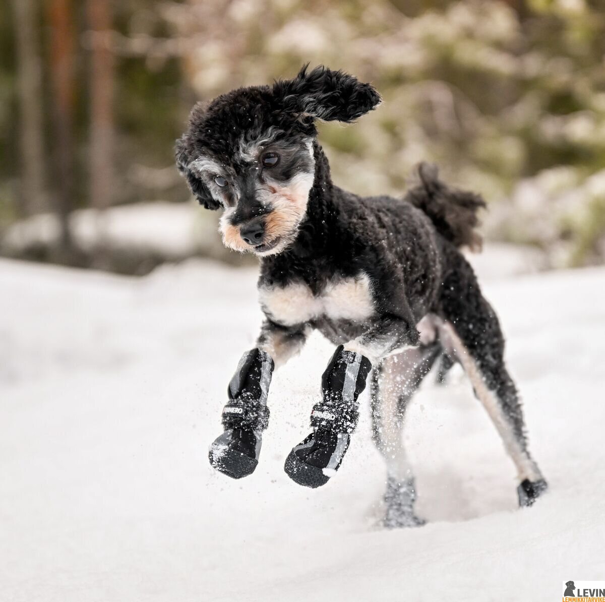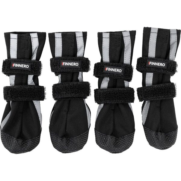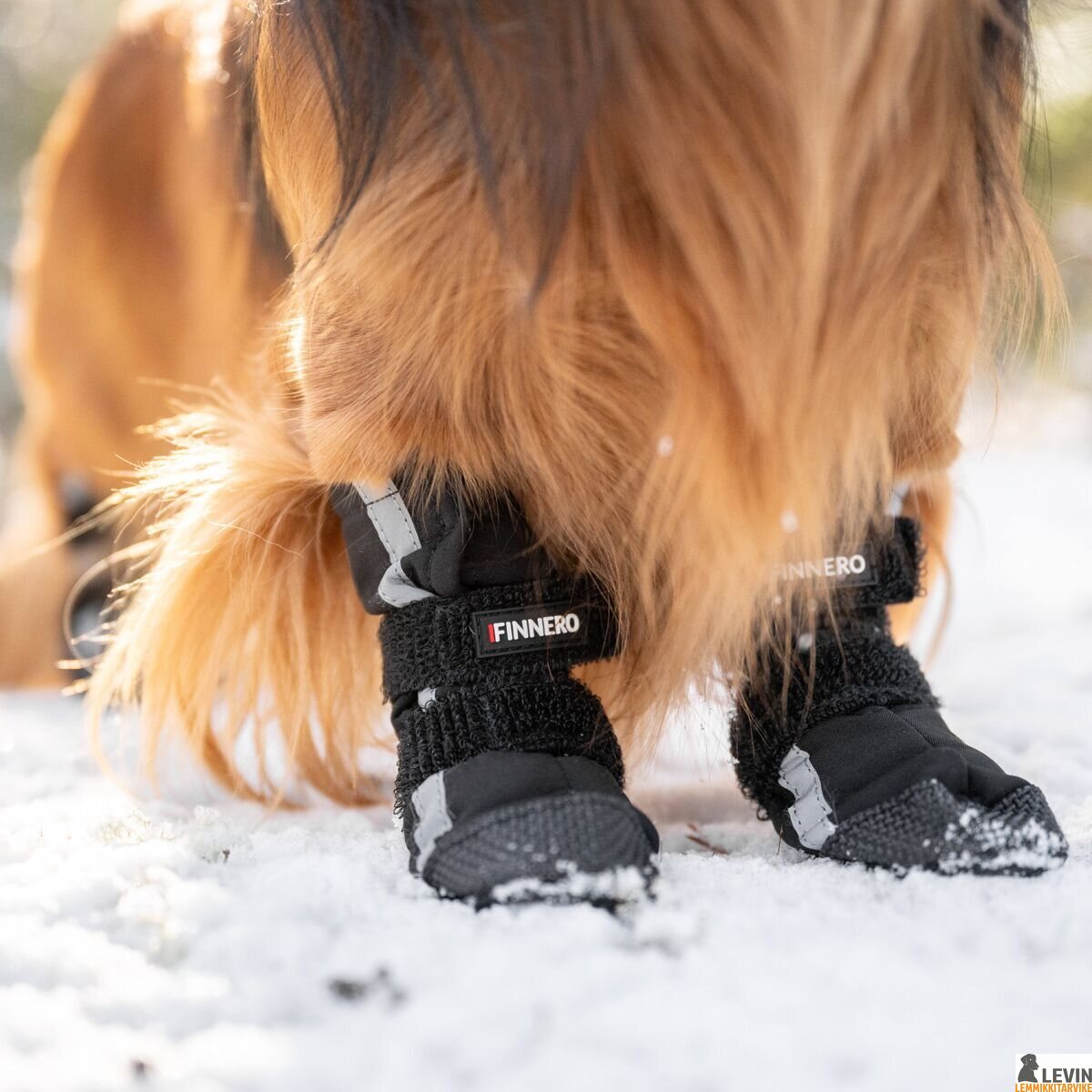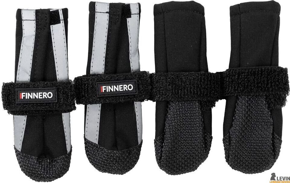 FINNERON HALLA softshell tossut suojaavat koiran tassut kaikissa sääolosuhteissa. Vettähylkivän softshell materiaalin ansiosta, nämä tossut sopivat talven pakkaskelien lisäksi kevään ja syksyn vaihteleviin kosteampiin säihin.