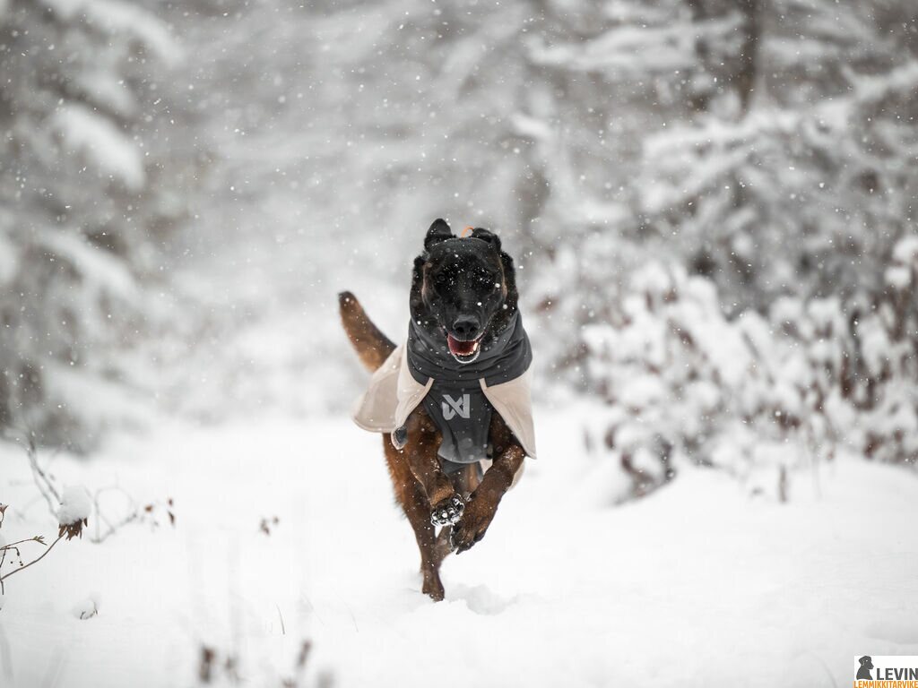 Non-stop dogwear Glacier wool 3.0 on yksi parhaimmista talvitakeista koirallesi. Tuulen- ja vedenpitävän kuorikerroksen, lämpimän 100 % merinovillavuoren yhdistelmä pitää koirasi lämpimänä ja olon miellyttävänä niin kylminä kuin sateisinakin päivinä. Päällimmäisen kuorikankaaan vesipilariarvo on 20.000 mm. Kulutukselle alttiit alueet on vahvistettu. Takki on valmistettu 100 % kierrätetystä kulutuksen jälkeisestä polyesteristä. Se on Global Recycled Standard -sertifioitu ja STANDARD 100 OEKO-TEX® -sertifioitu.
