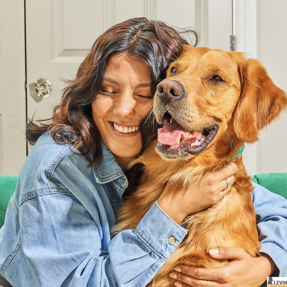 Valvo koiraasi sen syödessä puruluita.