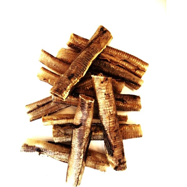 Kuivattu strutsin henkitorvi on ainutlaatuinen ja luonnollinen vaihtoehto koirasi herkutteluhetkiin. Tämä ilmakuivattu herkku tarjoaa rapean ja kevyen pureskeltavan, joka sopii erinomaisesti kaikenikäisille ja -kokoisille koirille. Strutsin liha on vähärasvaista ja hypoallergeenista, mikä tekee siitä ihanteellisen valinnan myös herkkävatsaisille ja ruoka-aineallergioista kärsiville koirille. Strutsin henkitorvi on luonnostaan korkea proteiinipitoisuudeltaan ja sisältää runsaasti tärkeitä ravintoaineita, kuten glukosamiinia ja kondroitiinia, jotka tukevat nivelten terveyttä ja liikkuvuutta. Sen rapea rakenne auttaa myös puhdistamaan hampaita ja edistää suun terveyttä. Tuote on 100 % luonnollinen, ilman lisä-, säilöntä- tai makuaineita – vain puhdasta, laadukasta eläinperäistä pureskeltavaa. Pussissa 100 g henkitorvia erikokoisina paloina.