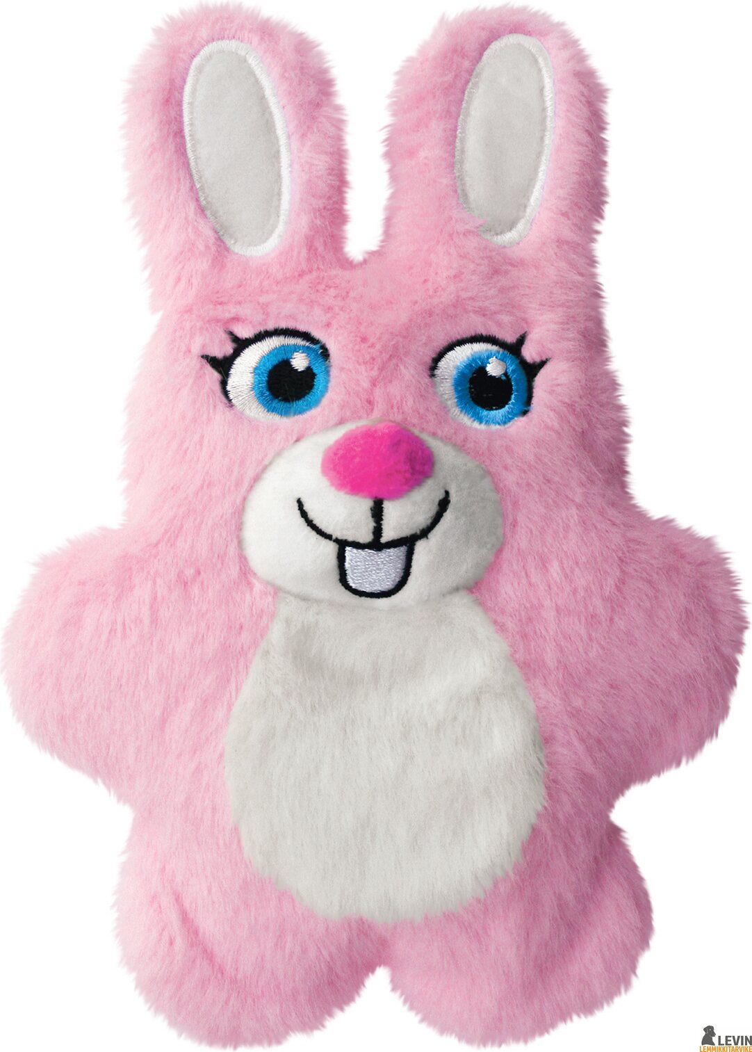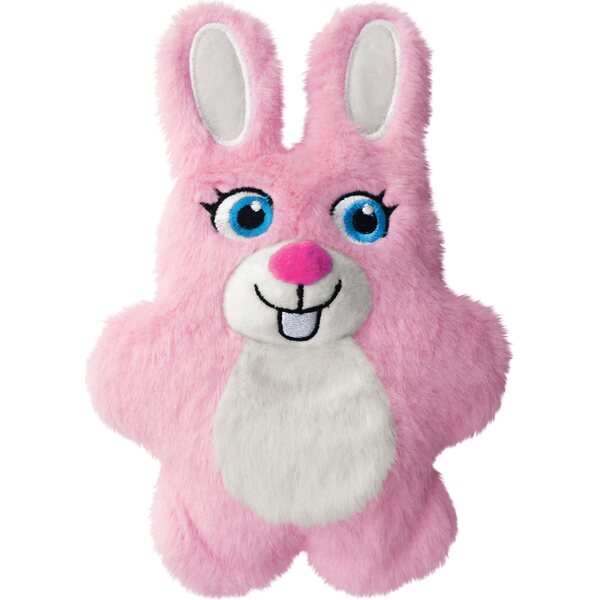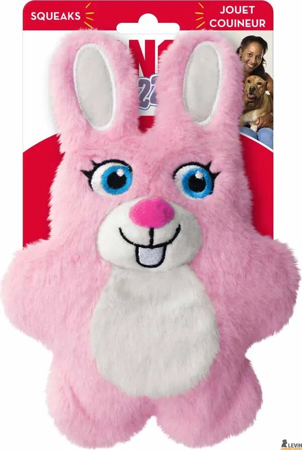 KONG Snuzzles Kiddos Bunny on vaaleanpunainen pupuhahmoinen pehmolelu. Pehmolelussa on kokovartalovinku ja materiaali pehmeää plyyssiä. Korkeus 19 cm.